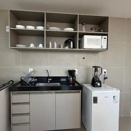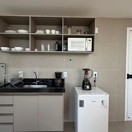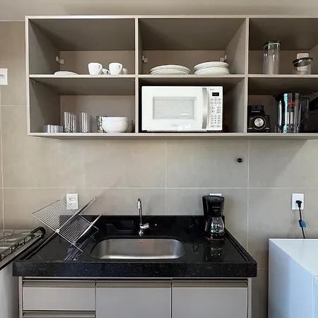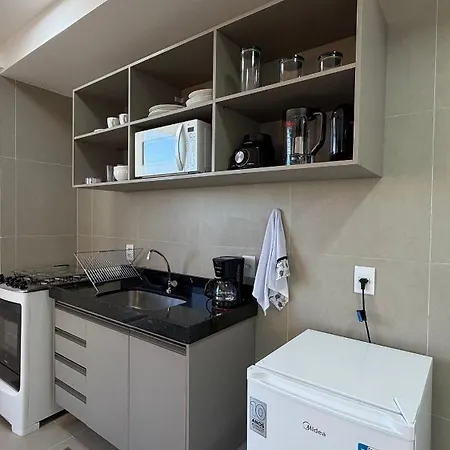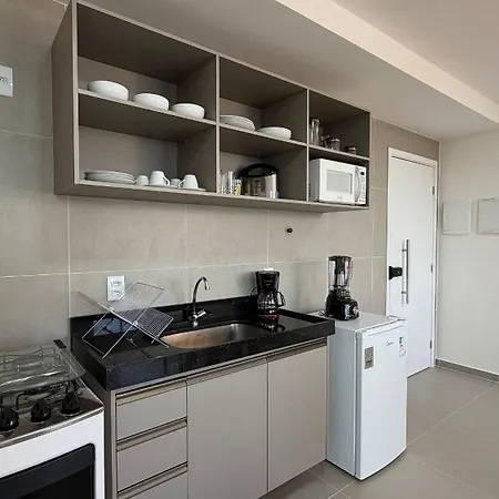 A fully-equipped kitchen is part of the amenities available at Rooftop Agamenon Prince - Flats Em Recife Por Yolo villa. - ❓